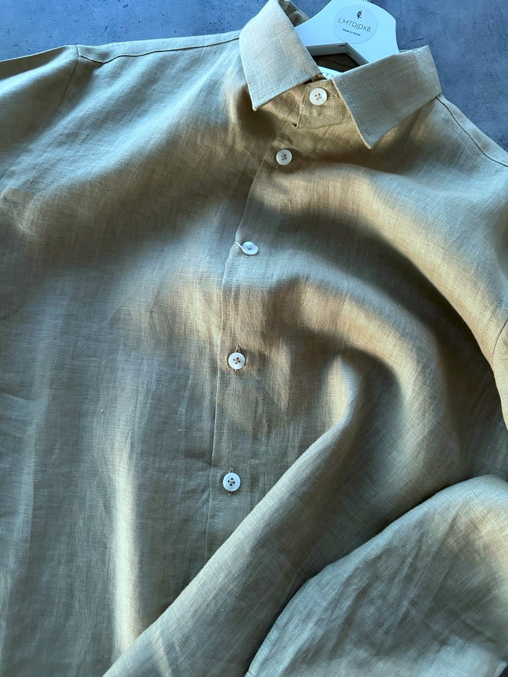 Long Sleeves Linen Shirt in Olive Green Tailored Fit, Back side darts Branded Buttons Premium Quality, Each piece is...