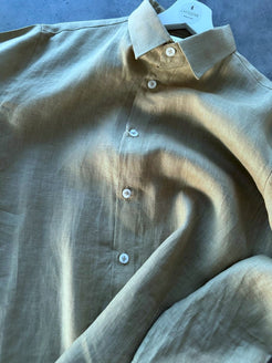 • Long Sleeves Linen Shirt in Olive Green